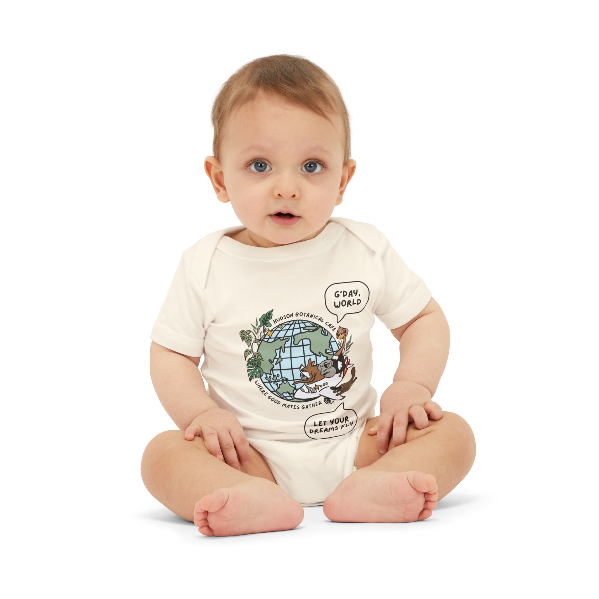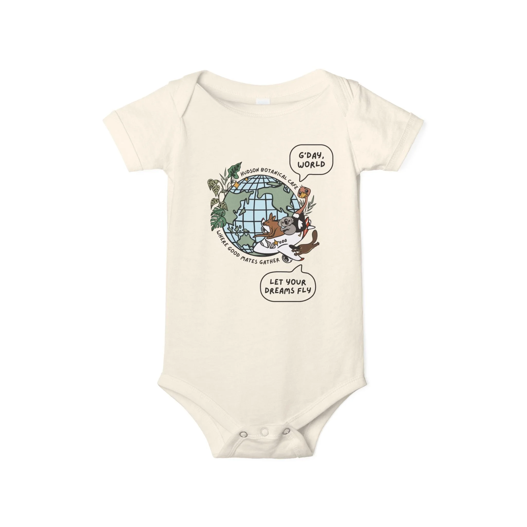 Shop › Let Your Dreams Fly Cotton Jersey Baby Onesie Image 1 of 4 Image 2 of 4 Image 3 of 4 Image 4 of 4 Let Your Dreams Fly Cotton Jersey Baby Onesie $20.00 Color: Natural Size: 3-6M 6-12M 12-18M 18-24M Quantity: Add To Cart Added!